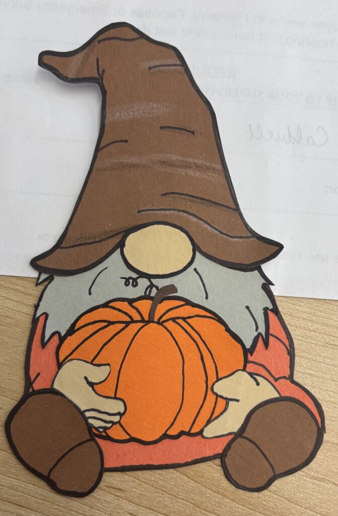 A fall scavenger hunt is the perfect little library adventure! I created a tiny scavenger hunt featuring 8 cute fall-themed objects that I hid around the library. Each object starts as a Canva image that I print, cut out, and then bring to life with a little sharpie and colored pencil magic. Once they’re finished, I laminate them so they’ll last for many seasons to come.